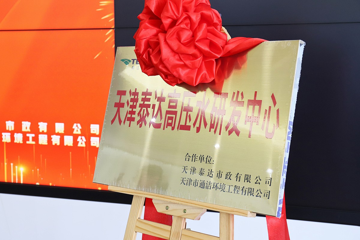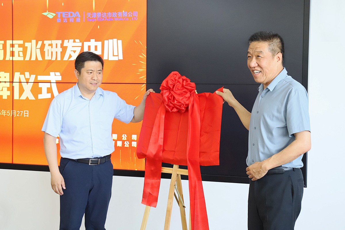 2025年5月27日下午,"天津泰達高壓水研發中心"揭牌儀式在天津濱海新區隆重舉行。天津泰達市政有限公司總經理劉鈺同志、副總經理杜強同志,天津市通潔環境工程有限公司董事長齊永健齊總等領導嘉賓出席儀式。來自政府相關部門、行業權威機構、知名企業代表齊聚現場,共同見證這一推動高壓水技術發展的重要時刻。